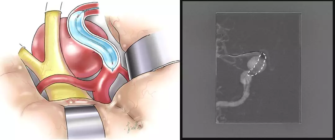Mizoi等发现仅阻断颈内动脉颈段,颈内动脉回流压力可迅速降低至阻断前的50%;若同时阻断动脉瘤远端颈内动脉,动脉瘤内的压力可上升至阻断前水平,原因可能与眼动脉和海绵窦分支血管反流引起。这在我们之前开展的类似杂交手术中也得到了印证。因此,Thorell和Steiger等先后提出把球囊放置在动脉瘤颈处可避免其他分支血管的反流,并成功应用于6例眼动脉段动脉瘤患者。将球囊放置在动脉瘤颈处,既能使动脉瘤壁充分减压,同时又能避免颈部切口。