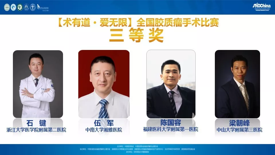 大会还设立了国际合作杰出贡献奖、脑胶质瘤诊疗卓越MDT团队、优秀青年科技工作者和优秀论文等奖项,并对“术有道 爱无限”| 全国胶质瘤手术比赛和全国神经肿瘤优秀病例演讲大赛进行颁奖。