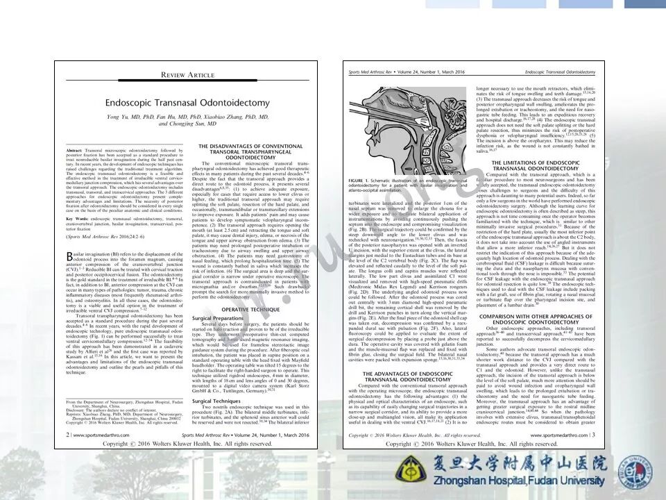 今天为大家带来的是由复旦大学附属中山医院余勇团队带来的脊柱内镜系列(八):经鼻腔内镜下齿状突切除术,欢迎阅读、观看!