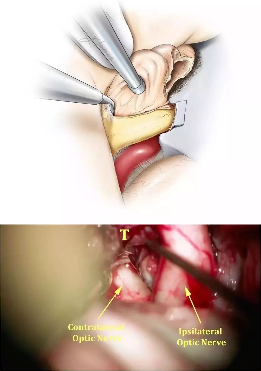 保护供应视交叉的穿支动脉是手术成功的关键。任何情况下都应该避免过度骚扰视器。