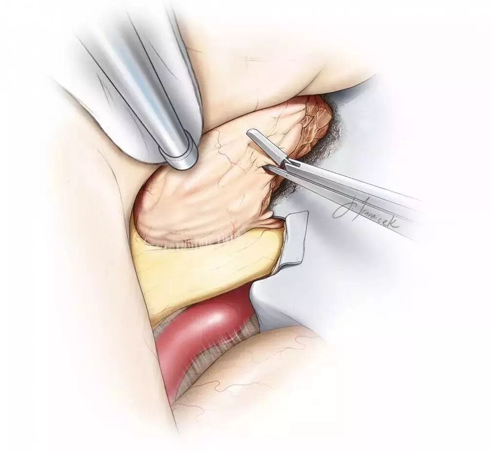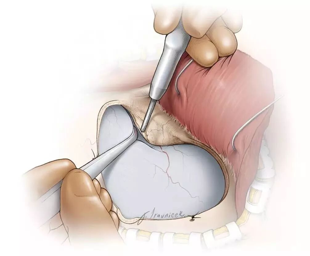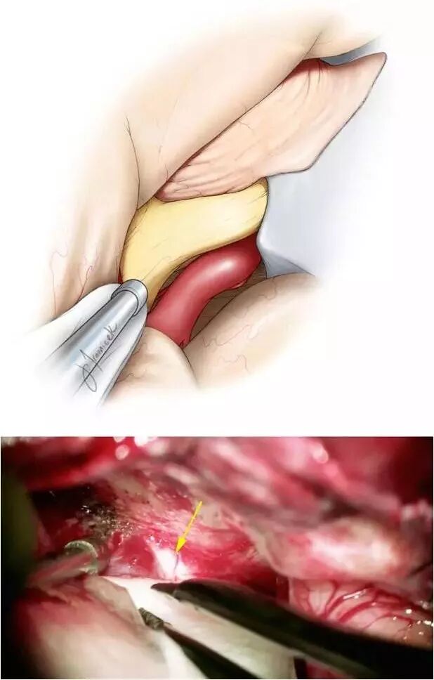 切除前床突实现同侧视神经的硬膜外减压之后剪开硬脑膜。