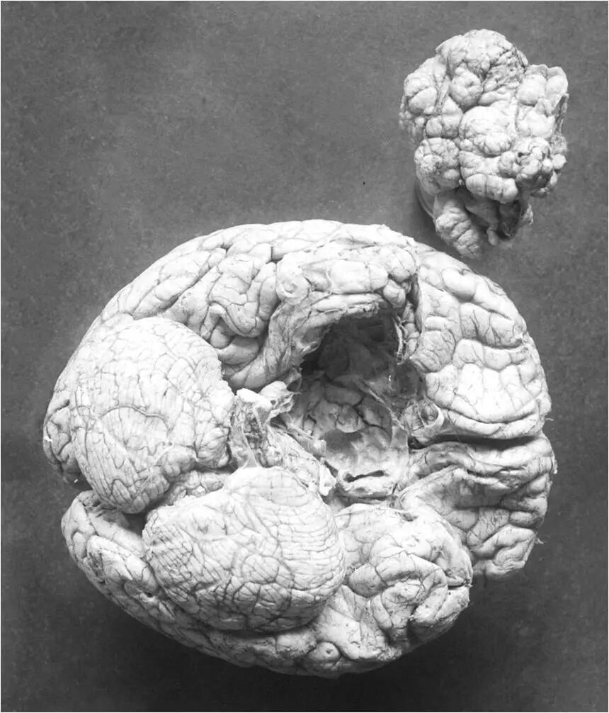 图1. 大约在1913年,harvey cushing给这位最有可能是罹患蝶骨嵴内侧型或者鞍结节脑膜瘤的患者做了尸检(照片由耶鲁大学cushing脑肿瘤登记中心授权)。