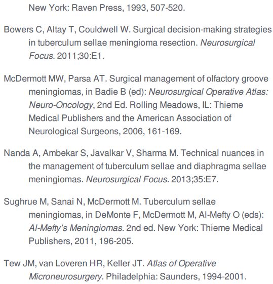 本章着重讨论鞍结节脑膜瘤(TSMs)的开颅技术要点,若想了解相关内镜经鼻入路的内容请参阅《内镜入路切除鞍旁脑膜瘤 》一章。