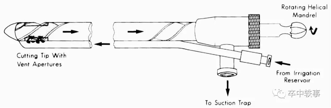 在文中 Backlund 和 Holst 展示了一种立体定向清除脑血肿的新仪器,称为 “螺旋泵/刀 - 吸引技术 - Combined Screw-and-Suction Technique”,可以切碎吸出已经凝固的血块。