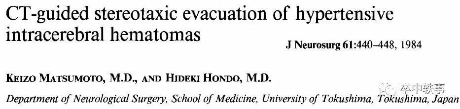 除了欧美神外医生之外,日本神外医生对脑血肿微创手术做出重大贡献。可惜多数文章发表在日语杂志上,不易评论。