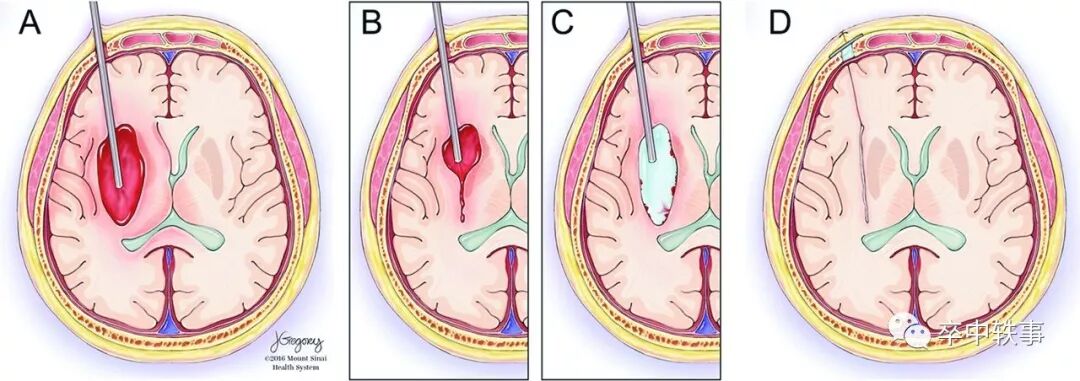 外科手术的原则是微创或 “无创 - Atraumatic”,对脑出血病人,无创性淸除血肿尤其重要。