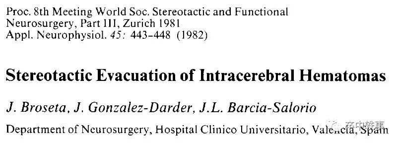 1982年西班牙 Valencia 的三位神外医生使用 Backlund 和 Holst 设计的仪器,在 Applied Neurophysiology 报道了16例病人脑血肿的清除结果(上图)。