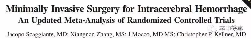 有意思的是在 MISTIE III 失败消息公布的几个月前,美国神外医生 Christopher Kellner(上图)团队2018年8月在 Stroke 发表了 Meta 分析,从15个临床试验,2152个病人得出结论,微创手术比较内科治疗,开颅手术都更有效果,减少了死亡率和致残率。