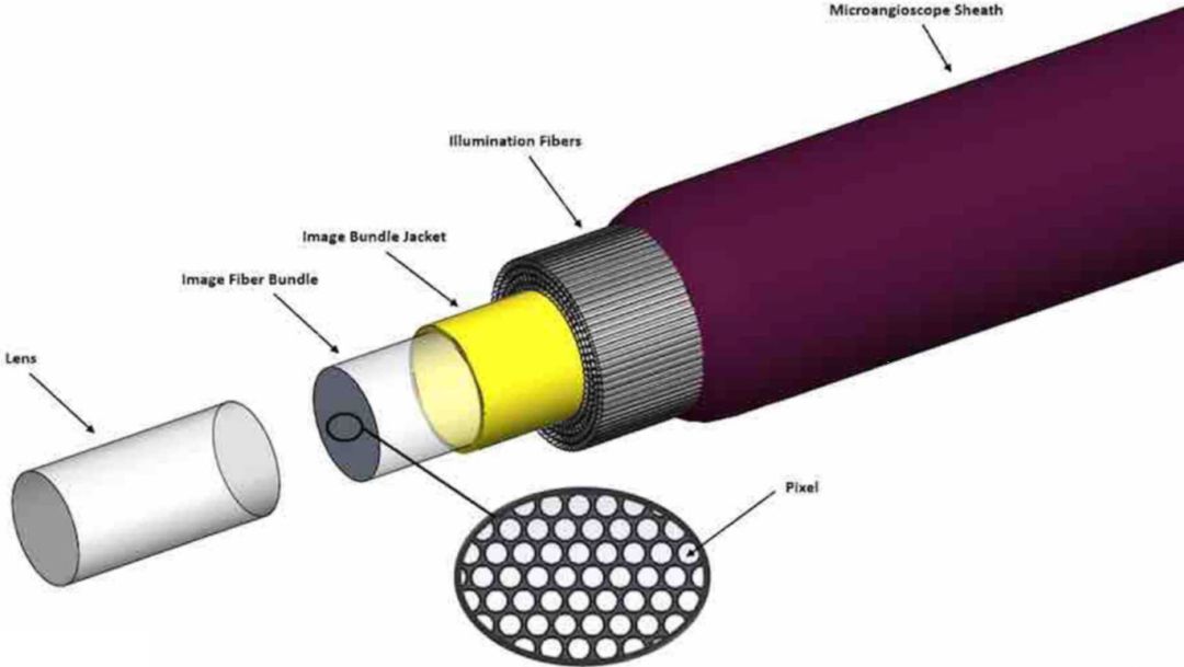 这种新型显微血管内镜是由相干光纤传象束技术设计而成。此显微血管内镜比先前记录的任何血管内镜都小,远端直径1.7F,同时还保持了高分辨率图像。它在猪模型中的使用展示了其在活体中图像的分辨率。