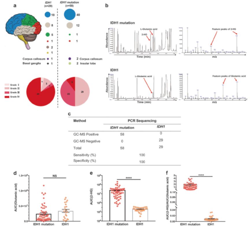 图4. 精简GC-MS法可以准确判断IDH1突变情况。