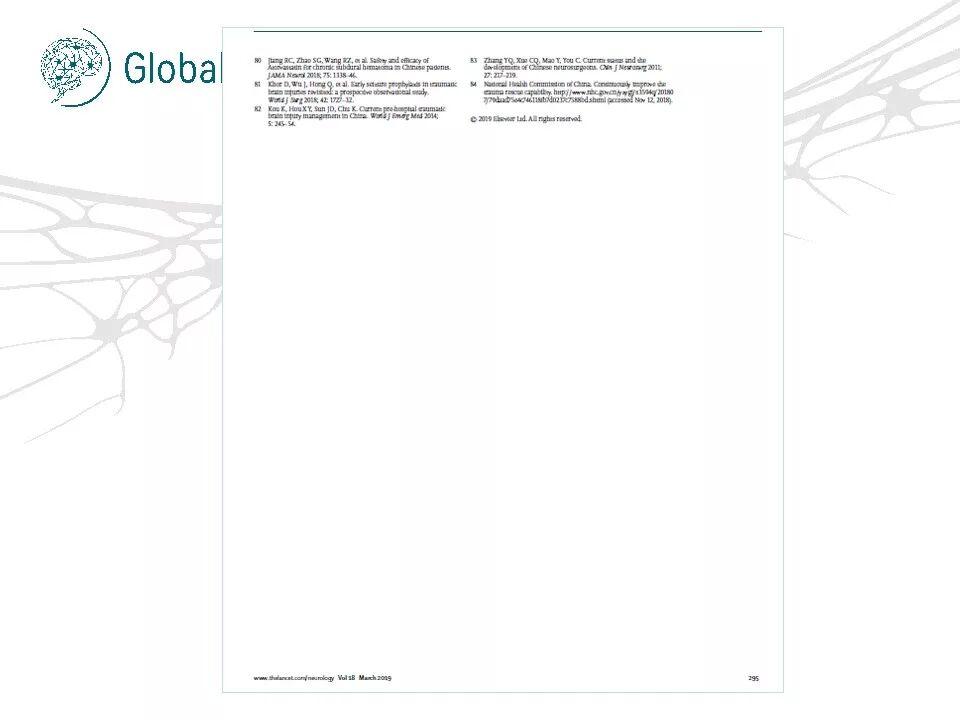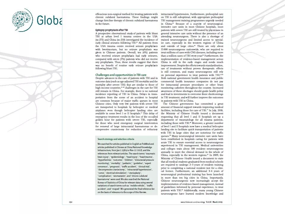 今天为大家分享的是《中国颅脑创伤-神经重症病例周刊》特刊,由上海交通大学医学院附属仁济医院首席专家、上海市颅脑创伤研究所所长、中华医学会创伤学分会主任委员、“神外资讯中国颅脑创伤-神经重症专家组”组长江基尧教授在4月26日Global Neuro Symposium-国际颅脑创伤研讨会上带来的精彩演讲:“2019柳叶刀神经病学:中国颅脑创伤”,欢迎阅读、分享。