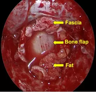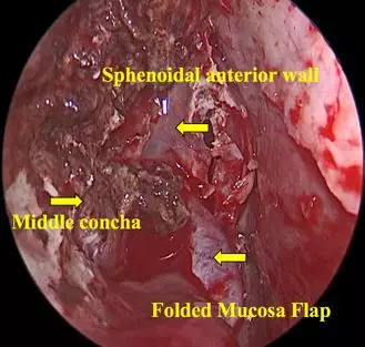 • Sellar floor reconstruction was performed using layers of fat, fascia, and nasal turbinate tissues