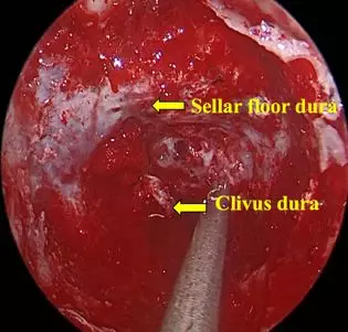• Sellar Floor bone removed and dura appear, Part of clivus dura evaded