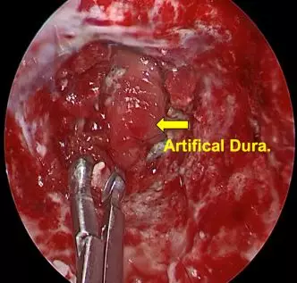 • The defective area was sealed with artificial dura sutured to the remaining dura