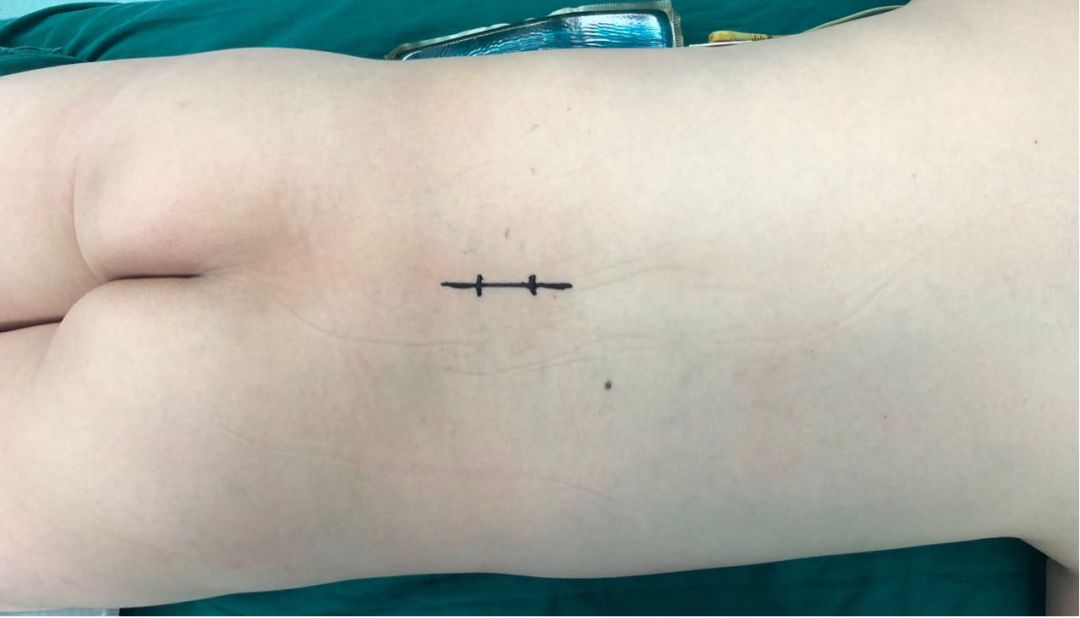 图4. 术中俯卧位,腰背部L4/5棘突切口