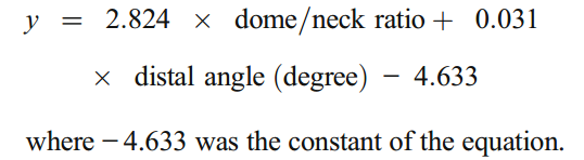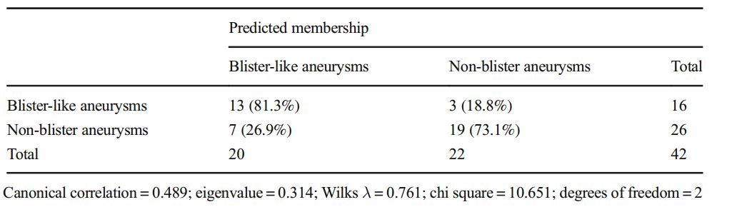 综上所述,作者认为,BBA和非BBA难以通过临床和影像学特征进行区分,因为它们具有许多共同特征。瘤体垂直径与瘤颈长度比<1不能作为诊断BBA的确切参数;以瘤体垂直径与瘤颈长度比和远端角度数作为因素的判别函数可能增加术前诊断BBA的准确性。
