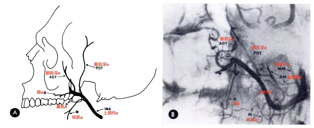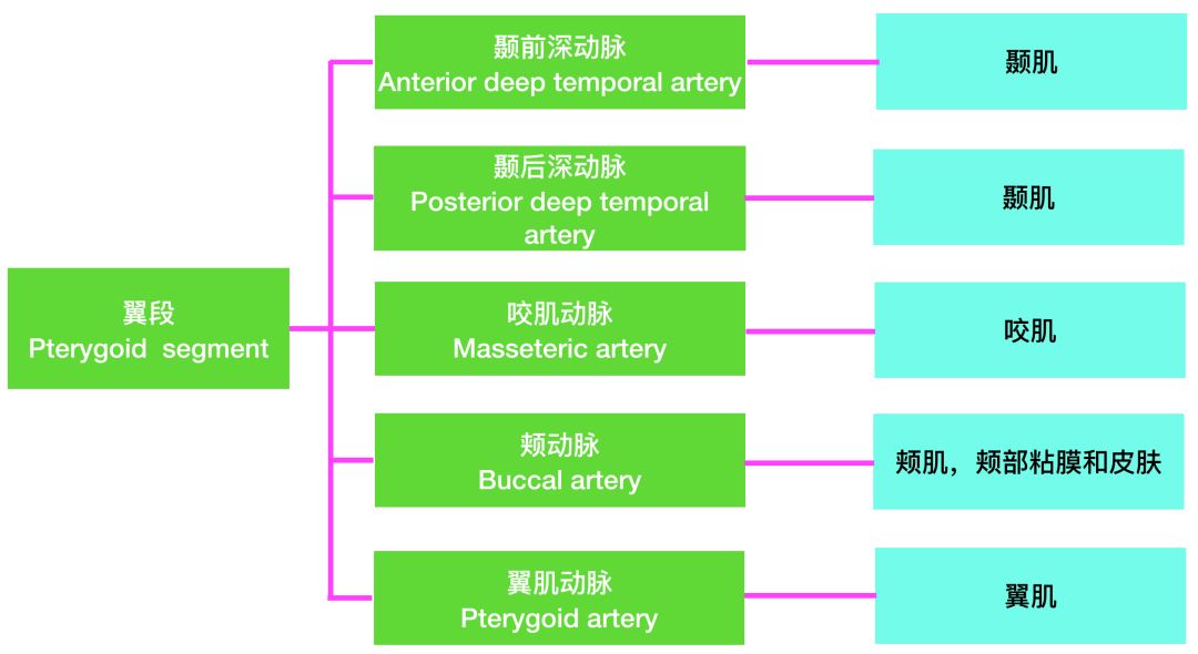 上颌内动脉第二段主要分支(Alvernia 2017)。