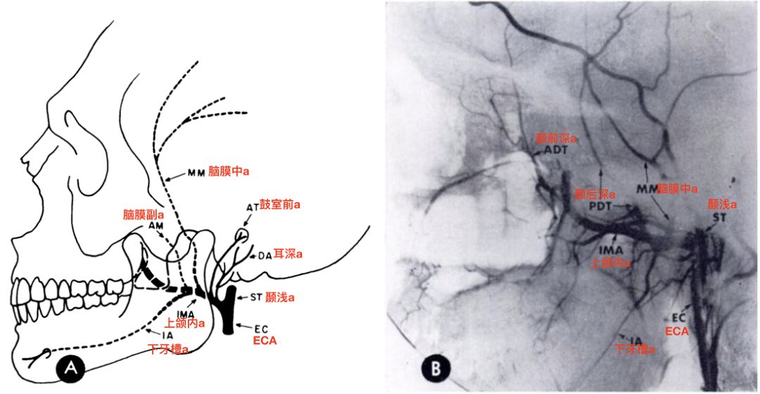 上颌内动脉深部型和浅部型,脑膜中动脉等分支的变异(Lasjaunias 2001)。