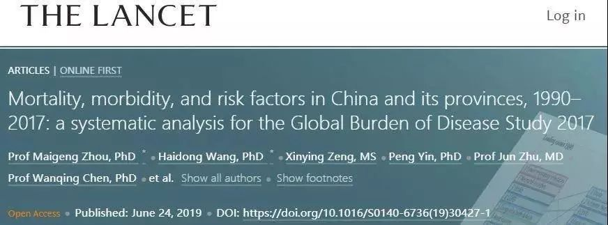 近期发表在国际医学杂志《柳叶刀》上的研究发现,中风、缺血性心脏病和肺癌等慢性疾病现在是中国早死的主要原因;中风和缺血性心脏病在1990年至2017年间成为疾病负担的主要原因。