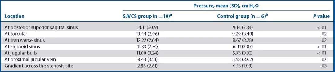 表2. SJVCS与对照组患者静脉造影测压参数对比。