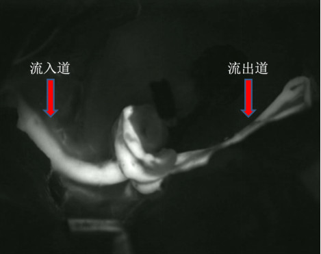 图3. 术中荧光造影:提示动脉瘤近端流入及远端流出均通畅。