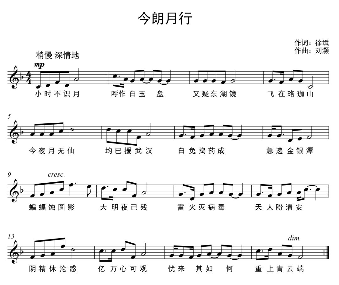 今年元宵夜,复旦大学附属华山医院神经外科徐斌教授得知华山第四批援鄂医疗队次日将赴武汉,整建制接管最危险的ICU病房,担起特种兵重任,即兴作诗-《今朗夜行》,上海音乐学院刘灏教授拜读后,激发创作灵感,很快就完成谱曲,并组织学生蒋宽编曲和杜钇樵演唱,献给这个时代的英雄-最美逆行者,感谢华山医院神经外科丁兴华教授视频剪辑。