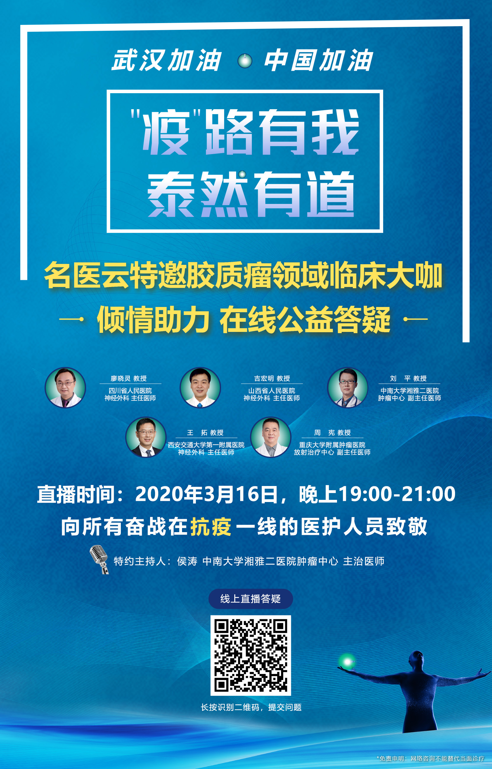 名医云-疫路有我,泰然有道第七期|秦智勇、赵明、贺世明、申戈、耿明英五位脑瘤专家公益在线答疑