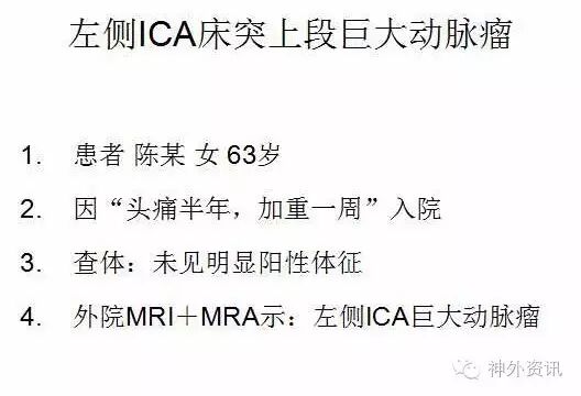 今天为大家分享的是《正海-妙术视界》第五期,由华中科技大学同济医学院附属同济医院神经外科于加省教授带来的《颈内动脉巨大动脉瘤的外科治疗》精彩手术视频。本次分享的内容包含两个精彩视频,分别是《后交通大动脉瘤》和《床突上段大动脉瘤》。视频内容非常精彩,但其中手术画面较多,上传至腾讯视频未能审核通过,故请读者长按并识别下方二维码进行观看。