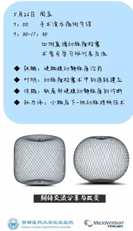 适逢“宣武医院颅内动脉瘤研修班”召开,本周四(第五十期)《正海-妙术视界》将直播宣武医院神经介入团队带来的手术直播及“颅内动脉瘤研修班”讲课内容,内容非常精彩,欢迎观看与分享。直播载体包括神外资讯微信订阅号、APP、官网等。