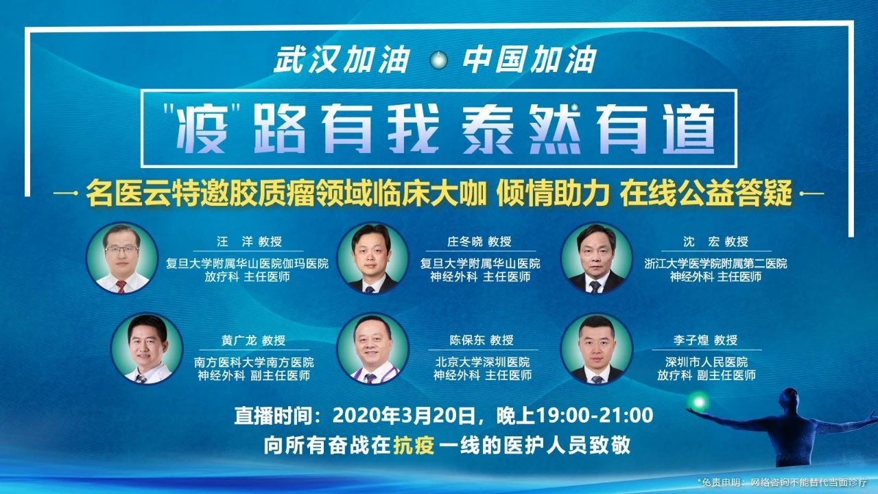 名医云-疫路有我,泰然有道第六期|王磊、汪永新、陈宏、陆雪官、初曙光五位脑瘤专家公益在线答疑