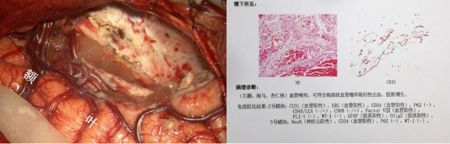 男性患者,29岁,10首发,癫痫病史19年,十年前曾在外院行右侧颅内电极置入,后因无法定位癫痫病灶,拔出电极未手术,行右侧颞区γ刀治疗一次。入院前发作形式:先兆(难以描述的感觉,之后有凄凉感)→双手重复动作→左上肢屈曲上抬,左手兰花指样后握拳,右手摸索拍打,行为异常(四处乱走),每次1分钟,1次/周。头皮脑电图癫痫放电主要集中在右侧半球,颞区著。头部CT右侧颞叶有低密度改变,周围有散在钙化,头部MRI右侧颞前叶及颞叶内侧结构有异常信号,PET-CT提示右侧颞前叶、内侧结构、岛叶有低代谢。根据术前发作临床症状学、脑电图、影像学、功能影像学结果,考虑右侧边缘系统为致痫病变可能,颞叶内侧结构为主,对侧海马需鉴别,需要通过立体定向脑电图确认致痫区及其范围。用ROSA做了右侧颞区为主的双侧颅内电极置入。颅内电极监测结果发作间期癫痫放电和发作期起源主要在右侧颞叶内侧结构(右侧海马杏仁核),结合临床症状学及影像学、功能影像及颅内电极监测的结果,我们设计了右侧颞前叶及杏仁核、海马全段、岛叶前下部的切除方案,手术过程顺利,术后随访一年无发作及先兆。该患者10年前外院做过一次颅内电极置入及伽马刀治疗,对我们影像学的阅读增加了一些干扰因素,患者术后病理为海绵状血管瘤,按照国际抗癫痫联盟2011年的癫痫病理分类应该属于FCDⅢC型,病变核心区周围的脑皮层可能有发育异常,我们没有分区域做病理检查,只有对病变的核心区域做了病理检查。该患者影像学异常主要集中在颞前叶,患者发作的临床症状学主要边缘系统(颞叶内侧结构)的发作,最后颅内电极也证实了,发作间期异常癫痫放电及发作期起源均来自于颞叶内侧结构,所以我们最后做了颞前叶及内侧结构的切除,如果单看影像学只切除颞前叶病变效果肯定不好。颅内电极在该患者治疗中,为我们验证了致痫区及决定切除范围起到了很重要的作用。