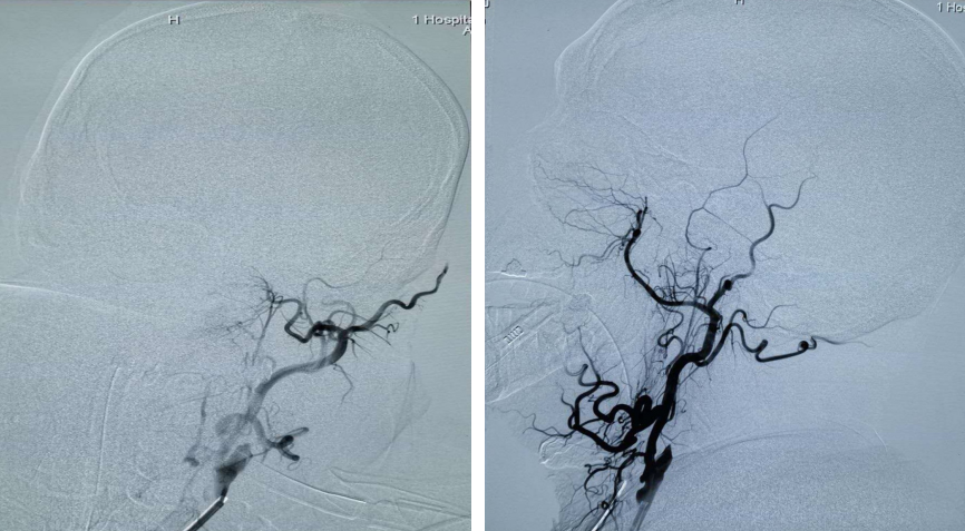术后复查左侧颈内动脉颅内段血供良好