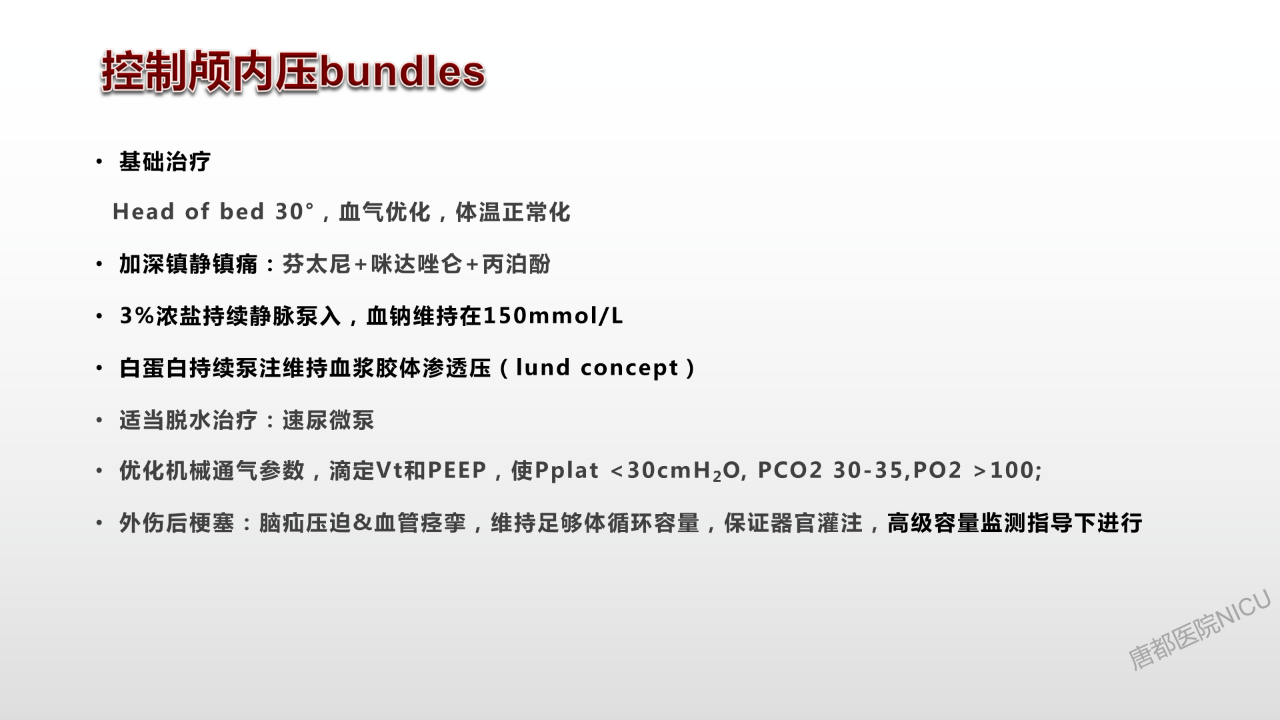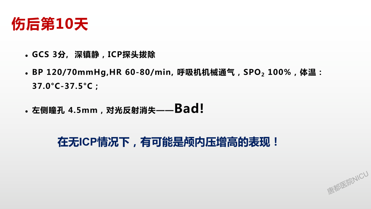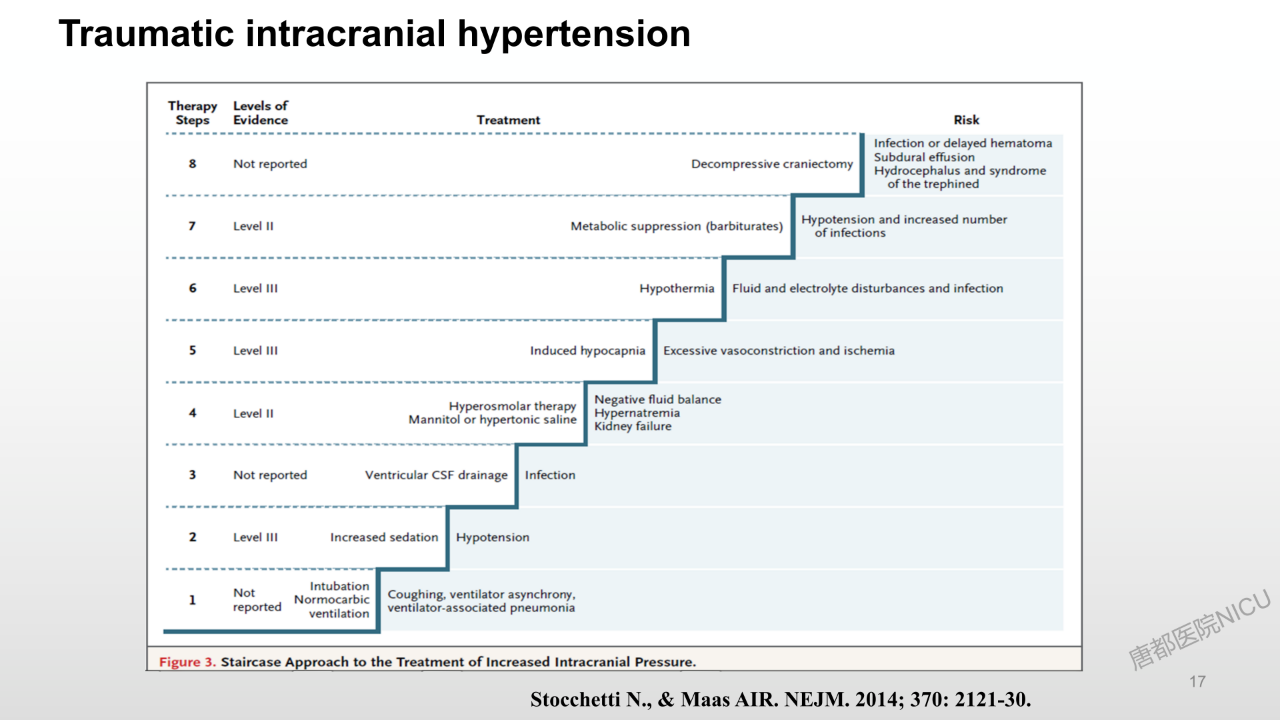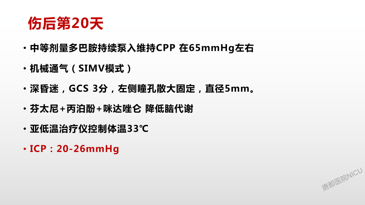 相信大家对于颅内压管控的降阶梯治疗策略都耳熟能详了。但是这个病人在这种特殊的情况下,又该怎么去管理?唐都神经重症是值得全国同仁去学习的。