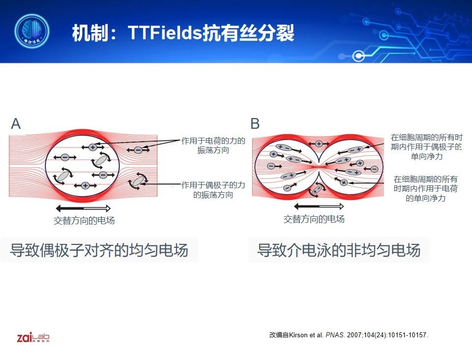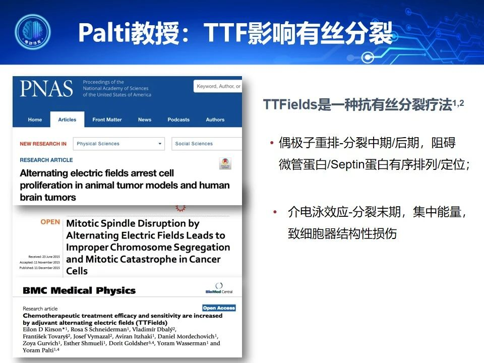 肿瘤电场治疗作为一种全新的物理治疗方式,已经正式登陆中国大陆,为众多GBM患者带来了新的希望。总所周知,肿瘤电场治疗的主要作用机制是,通过干扰肿瘤细胞的有丝分裂过程,从而达到抗肿瘤的作用。那么,除此之外,肿瘤电场治疗,是否存在其他作用机制来抑制肿瘤生长呢?不同机制之间是何种关系呢?今天就由复旦大学附属华山医院神经外科花玮副教授来为我们揭示,肿瘤电场治疗分子机制的研究进展。