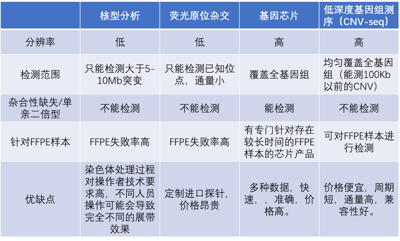 表1.常见染色体拷贝数变异检测技术对比