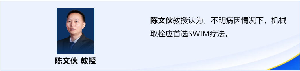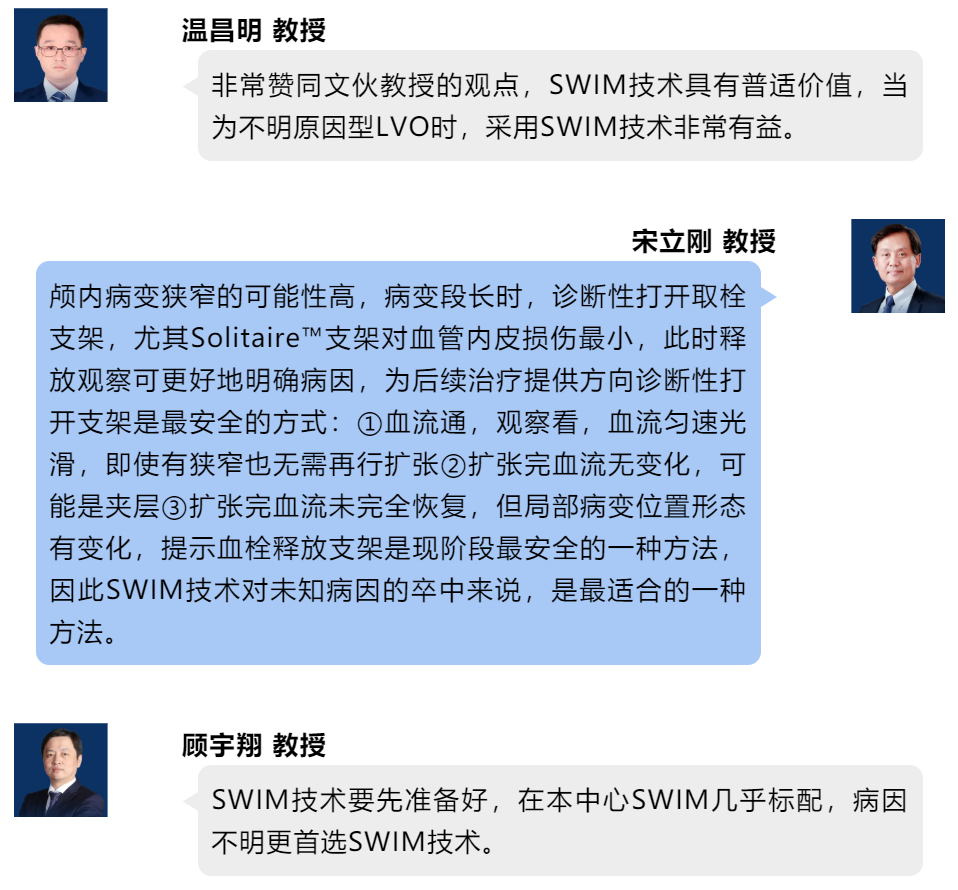 第二期 “美力有约 鸿儒思辨” 专家团激情思辨在前,后续衍生解读继续,若问取栓遭遇战如何打,一本《思辨攻略》伴君行。在时间窗允许的情况下充分完善检查,仍不明病因的急性缺血性脑卒中患者,机械取栓首选SWIM技术。