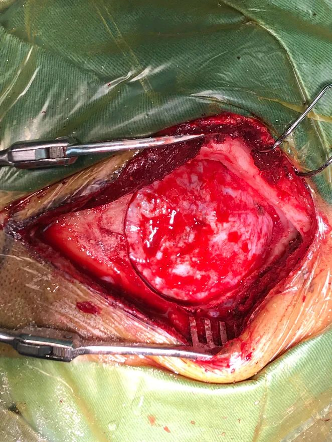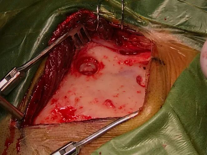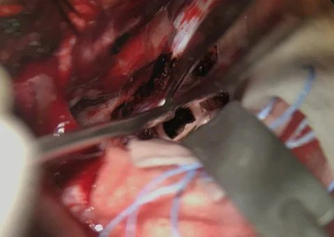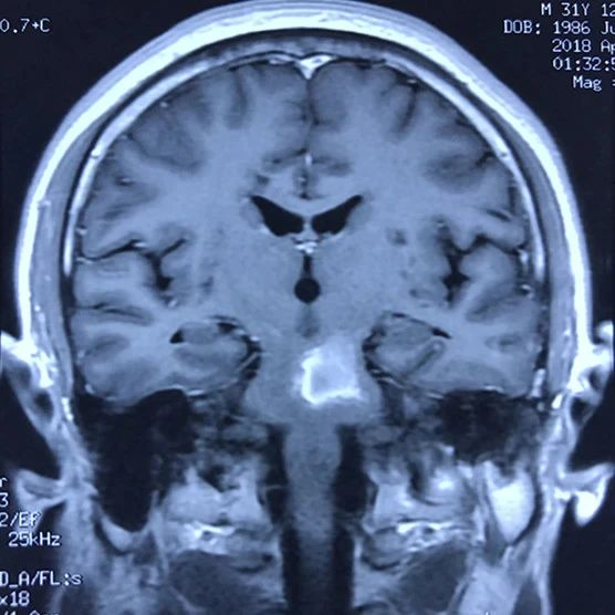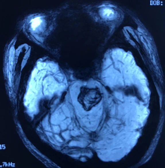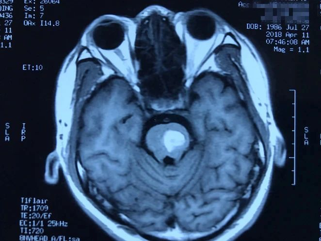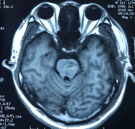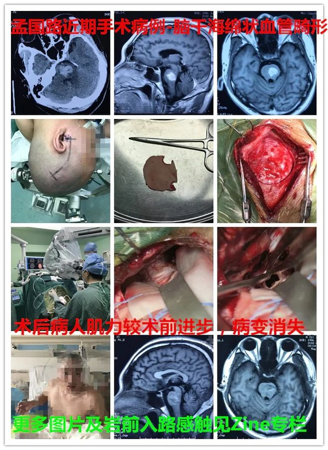 病人多发脑海绵状血管畸形,本次出血部位位于桥脑。第一次出血,术前偏瘫,转入我病房时为出血一月左右,采取颞下岩前入路切除脑干病变,术后病人肢体肌力较术前有提高,目前尚未出院。