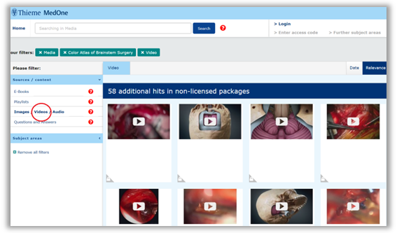 ④此外,部分英文电子书中都会有配套的手术视频资源,比如《Atlas of Neurosurgical Techniques Brain》、《Color atlas of brainstem surgery》等等Thieme出版社 Medone网站电子书上面的手术视频。