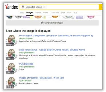Yandex搜索引擎可以直接搜索图片,将图片上传后就可以得到下面的结果: