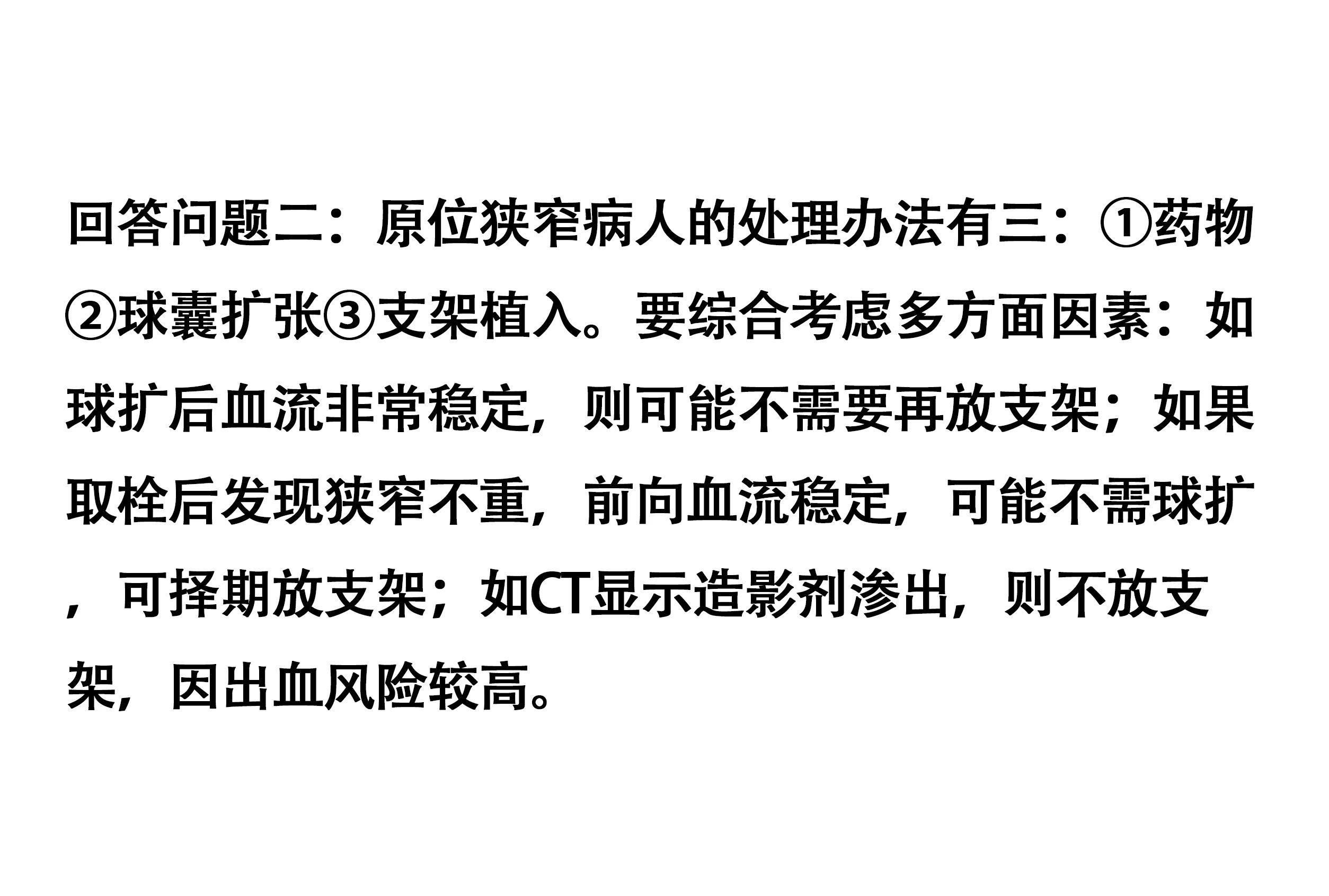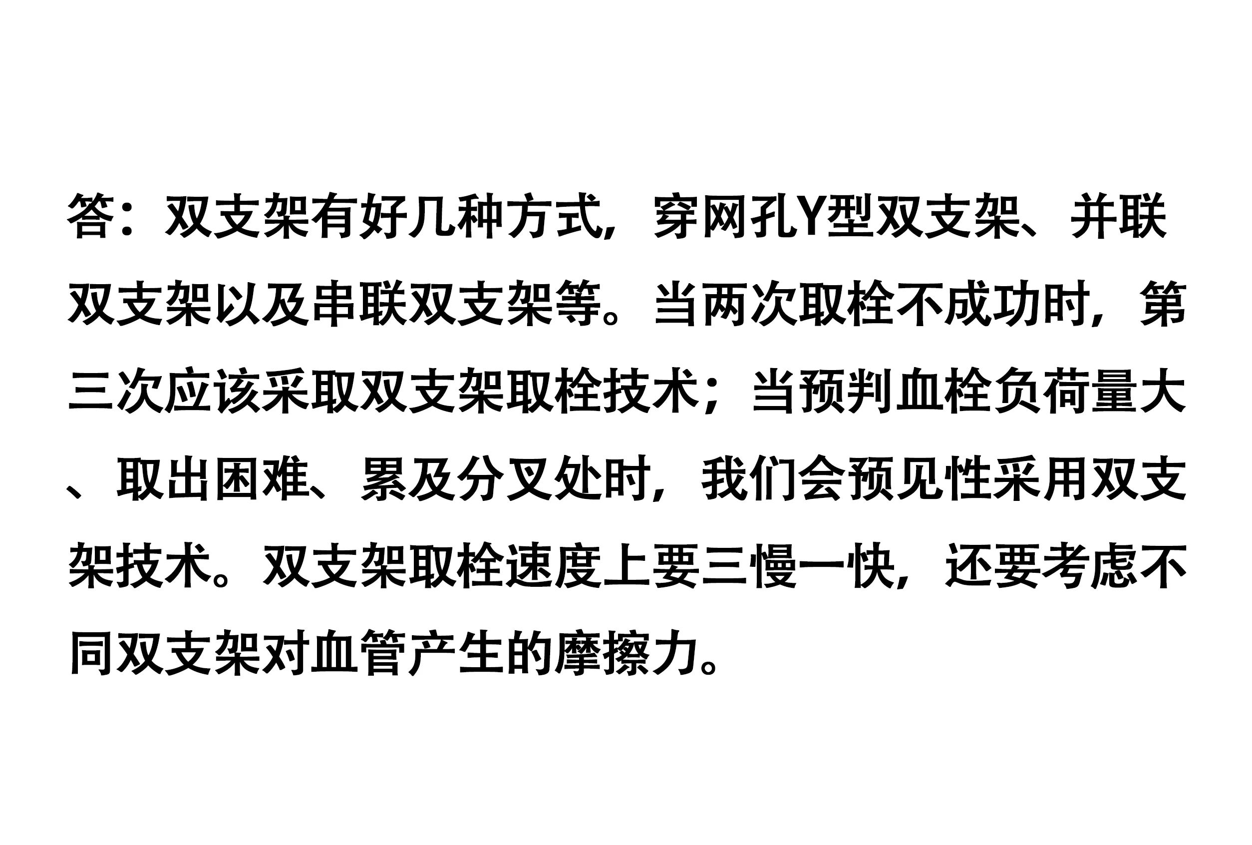 最后,张利勇主任还为大家介绍了SWIM在中国延展出的其他技术-应对困难取栓的双支架技术和ISBE技术。聊城市脑科医院的经验是当两次取栓不成功时,第三次应该采取双支架取栓技术。ISBE技术是取栓支架解脱前的球囊扩张技术,可以使医生更从容体面的结束手术,而这项技术的基石也是源于Solitaire支架的可回收、可解脱。