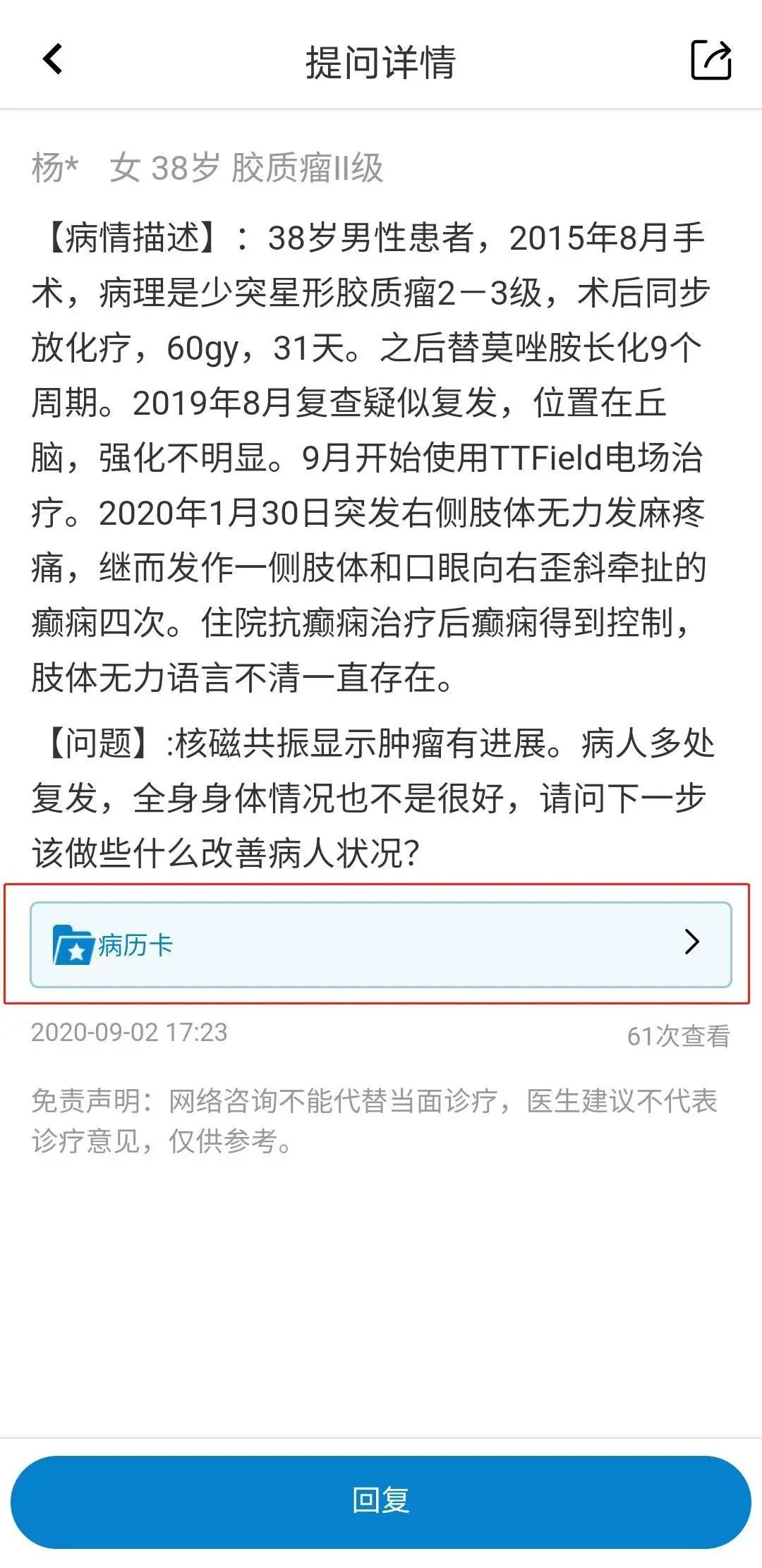 在这次的版本更新中,我们推出了全新的数字病历卡系统:患者输入相关信息后,自动生成病程时间轴。既方便患者对自己的病历进行整理,与医生更高效沟通,也方便医生了解自己患者的病史情况。