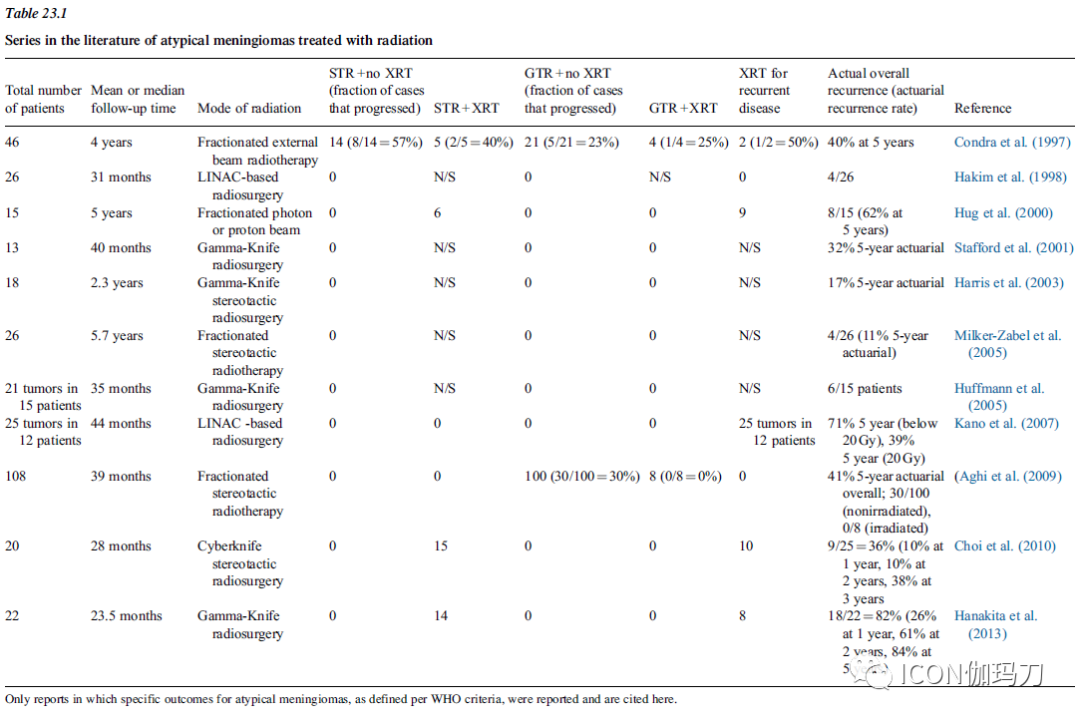 表1.放射治疗不典型脑膜瘤的系列文献。