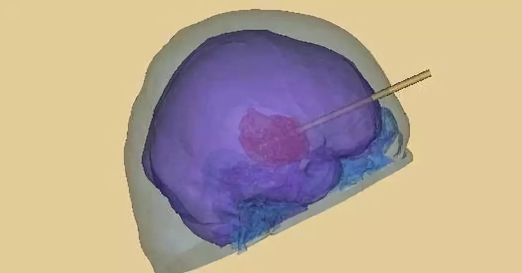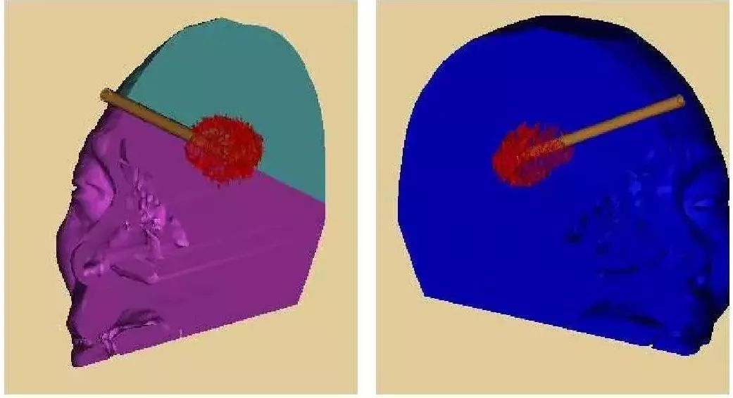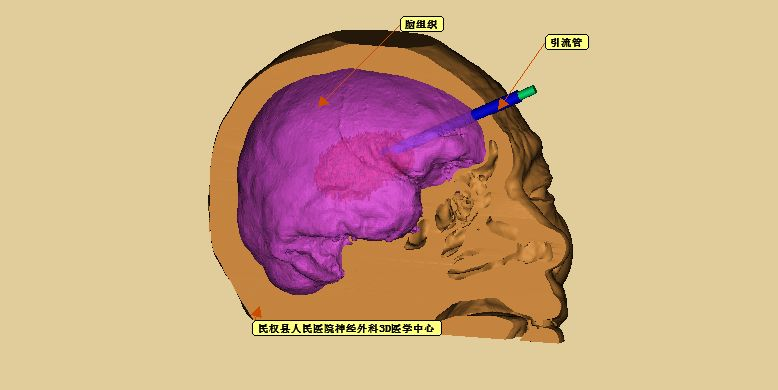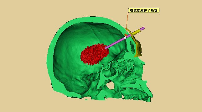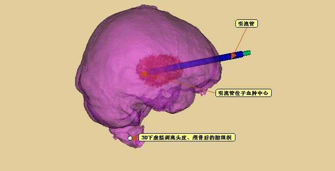 术前模拟设计,引流管位于血肿中心