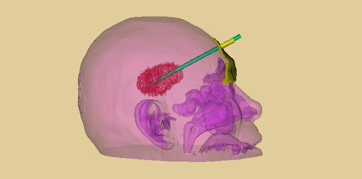 术前模拟引流管经头部软组织、脑组织后穿刺进入血肿