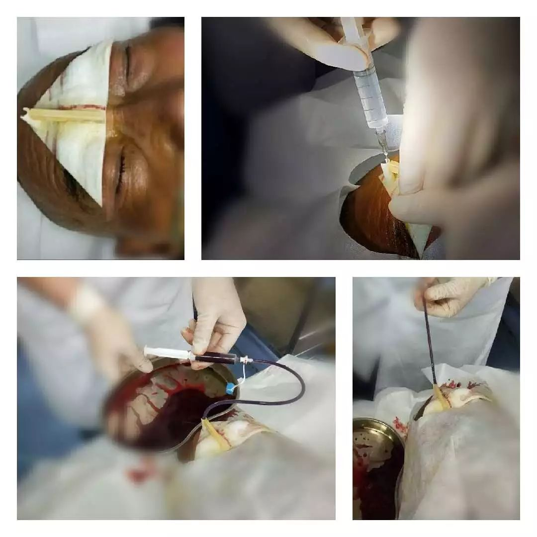 引流管与血肿、面部的导板关系