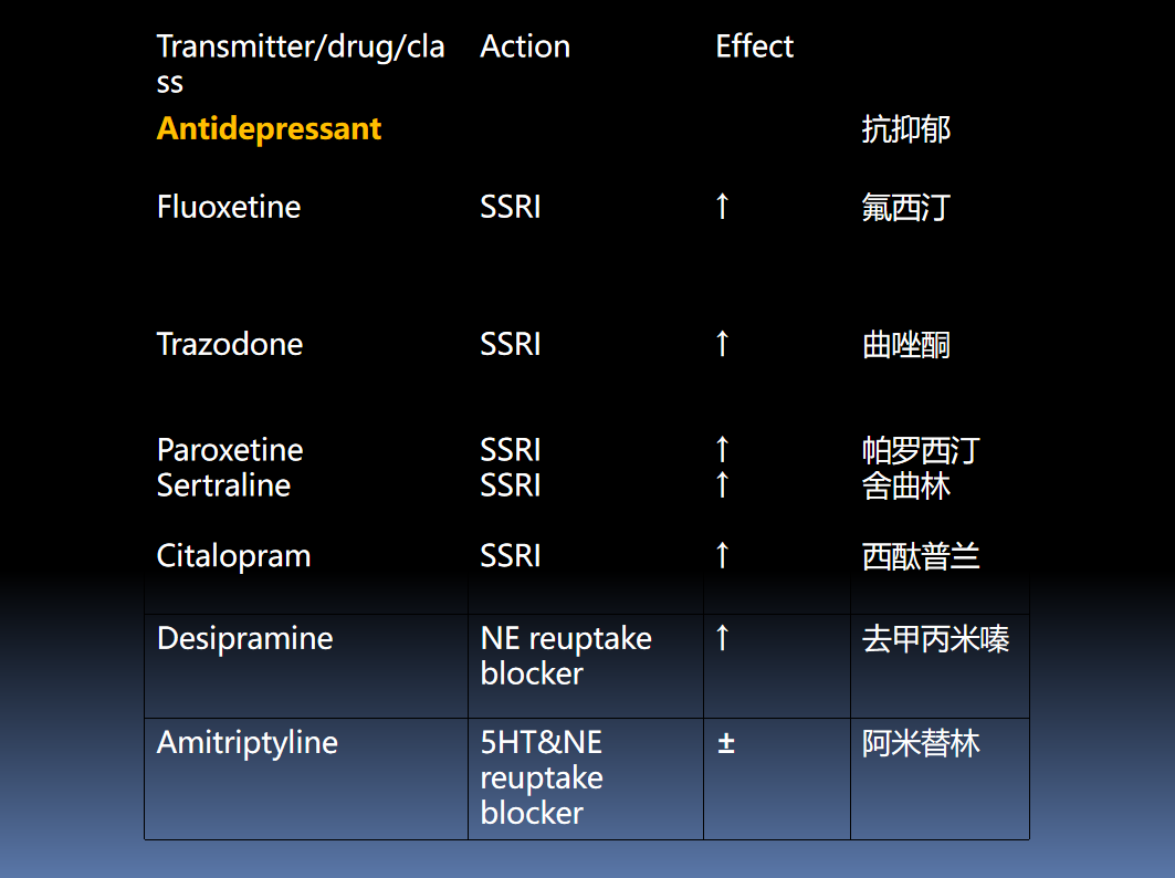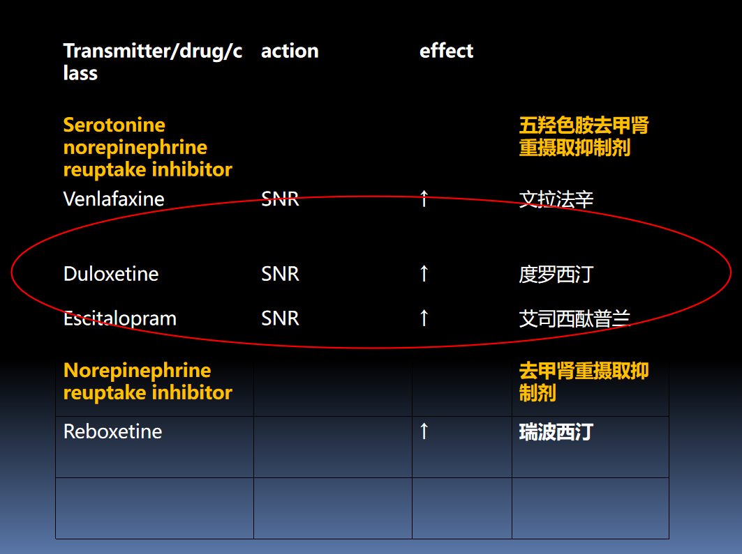 · 其中度洛西汀/文拉法辛/瑞波西汀等属于5-ht 和去甲肾上腺素重摄取抑制剂。