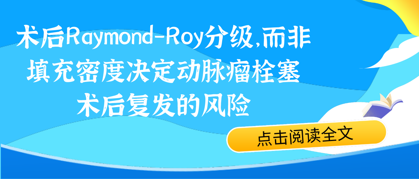 以往研究显示动脉瘤栓塞密度和动脉瘤术后栓塞情况是动脉瘤复发的重要因素。动脉瘤栓塞密度低的患者容易复发,同时基于Raymond分级的研究显示,与IIIa和II类动脉瘤相比,IIIb类动脉瘤亦具有更高的残余灌注风险(80.8%对46.4%)和更高的再通率(65.1%对27.4%)。但目前尚不清楚二者哪个是影响动脉瘤复发率的主要因素。我们假设这些因素其实内部存在相互作用,可能只有一个因素是动脉瘤复发的独立危险因素。本文中,我们通过单中心回顾性研究进行进一步的研究。
