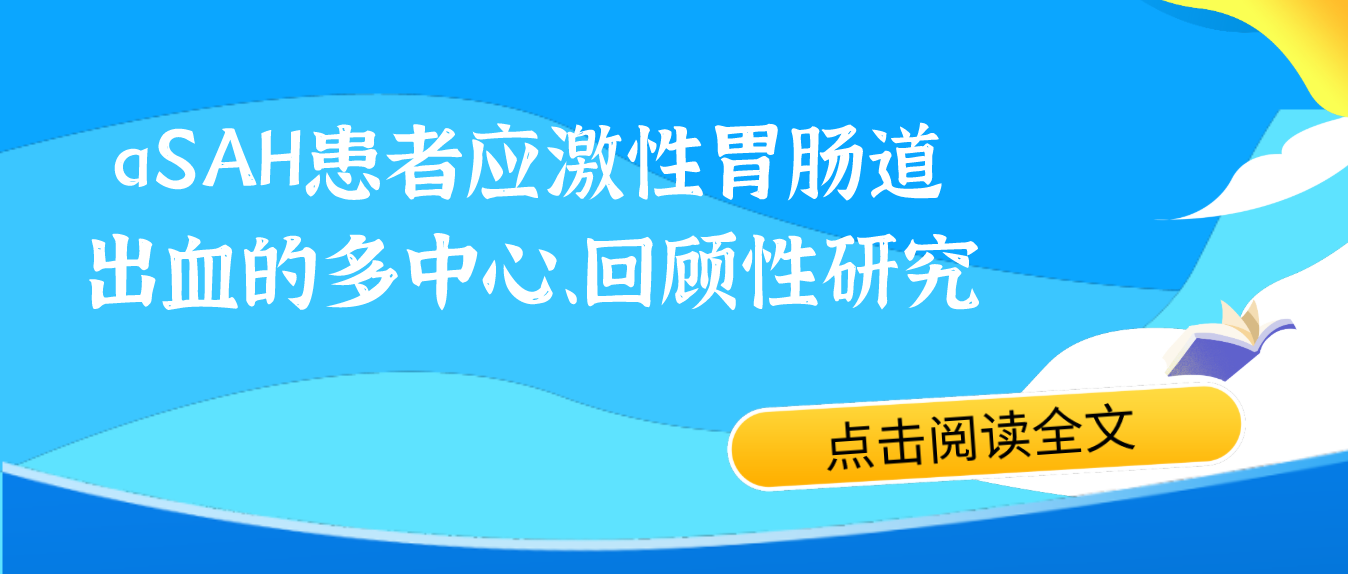 应激性胃肠道出血(SRMB)可发生在约2-4%的重症患者中,动脉瘤性蛛网膜下腔出血(aSAH)患者通常病情危重,常需要机械通气,并且在动脉瘤栓塞后还需要接受抗凝或抗血小板治疗,这些都是SRMB的特定危险因素。但是,目前尚无研究评估aSAH患者SRMB事件的发生。美国肯塔基大学保健中心的Dina Ali等对此进行研究,调查aSAH患者SRMB的发生率,评估抑酸剂对SRMB的影响以及SRMB的危险因素,结果在线发表于2020年11月的《Neurocrit Care》上。