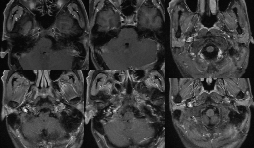 查体:神清语利,双瞳孔等大等圆,直径2.5mm,对光反应灵敏。面纹对称,伸舌居中,左侧咽反射消失,四肢肌力肌张力,感觉系统未见明显异常,病理反射未引出。