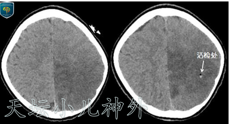历经三年就医,内科外科用尽各种方法,病情逐渐恶化,诊断都是一头雾水,何谈治疗。家长抱着最后一线希望来到北京天坛医院,鉴于病情复杂,我们决定对表浅位置的病变施行开窗活检术,尽量多取材,以明确病理性质。患儿于2020年08月18日在我院全麻下行左顶开颅病变开窗活检术,显微镜下切除病变大小约10×10×10mm,术后病理回报提示:混合性神经元胶质肿瘤(WHOⅡ级),经过三年的辗转,终于明确病变的性质与级别。